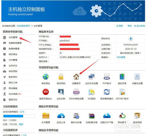 2、点击“主机管理”进入控制面板详情页面: