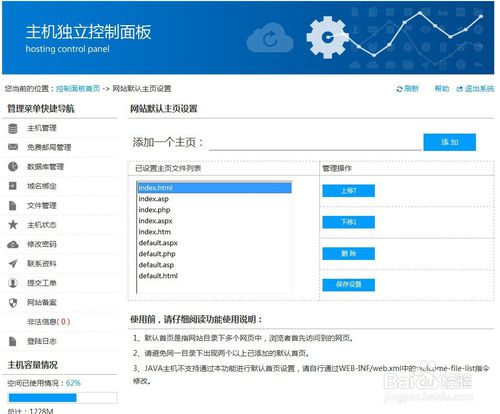 如果没有index.html添加,如果有就把index.html上移到第一位保存设置。刷新控制面板看是否修改成功。