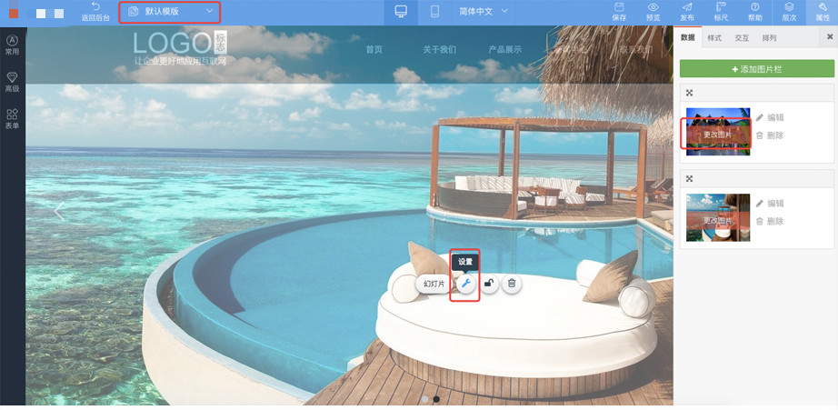 Banner如何替换?1:选中该幻灯片控件或者点击小扳手“设置”,右侧出现属性栏,在“数据”中可以更换、添加幻灯片(如幻灯片在模板里,点击“编辑模板”,在模板中编辑幻灯片)2:点击样式–设置幻灯的切换样式—点击保存即可 赏常见问题