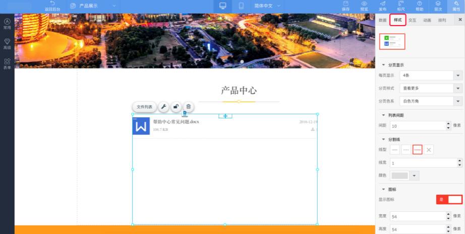 3:进入到设计页面,点击“常用控件”—“文件列表”,在页面上画框,即可添加一个文件列表控件