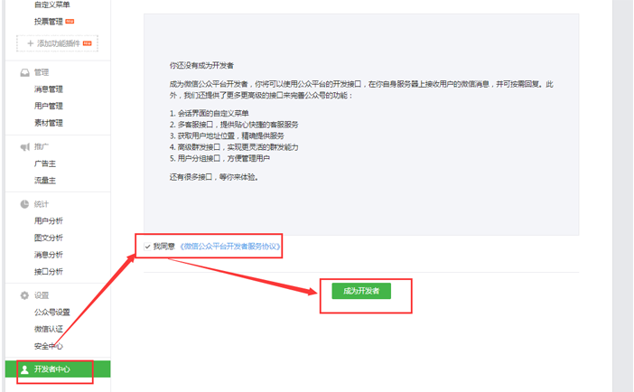 7:点击左侧开发者中心——成为开发者,如图所示
