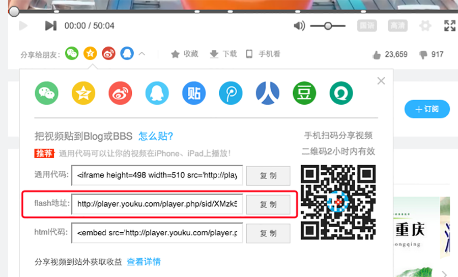 3:视频地址获取方法:先把视频上传到优酷、土豆等网站,上传之后,打开视频播放界面,点击分享给好友,复制flash地址(即URL地址)