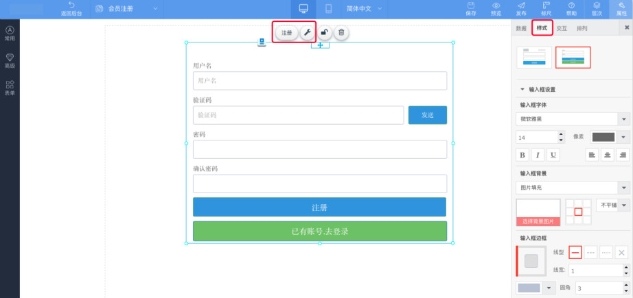 4.选择“样式”设置注册框的样式,然后点击保存即可。