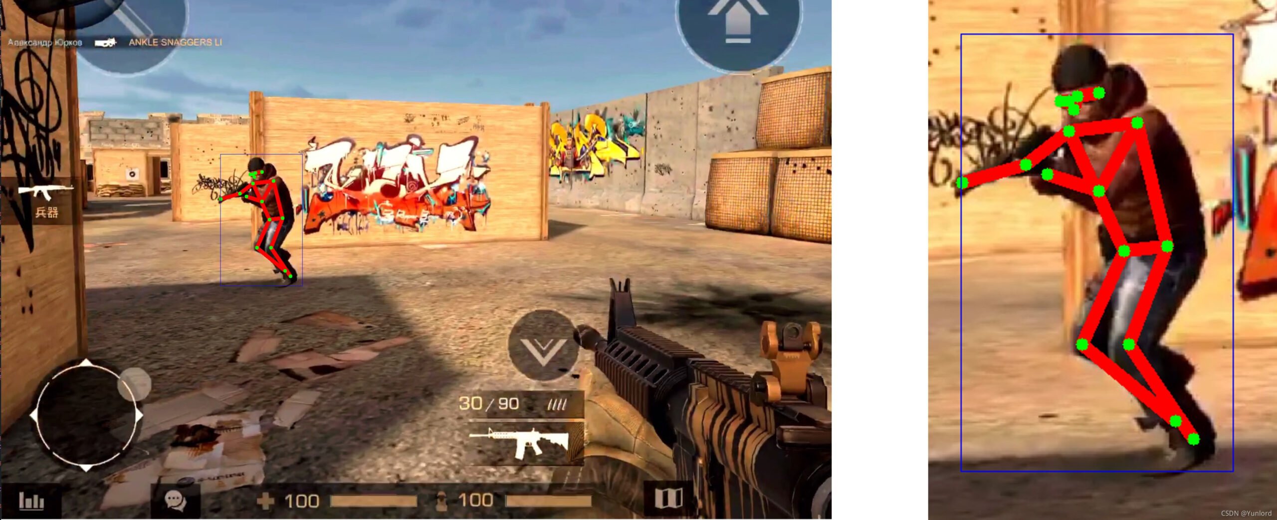 总体来说,我们首先需要训练好一个人体关节点检测的AI视觉模型,然后将游戏画面实时送入AI视觉模型中,再反馈出游戏人物各个部位的像素位置,然后确定瞄准点,并将鼠标移动到瞄准点位置。
