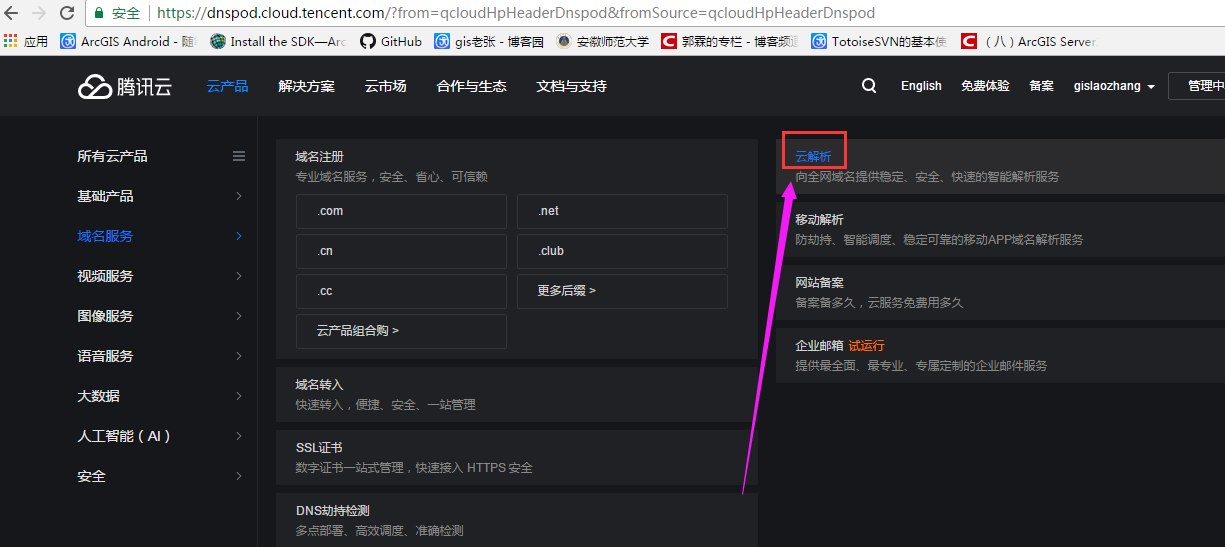 b、购买云解析方法类似。其中域名解析就是将人们惯用的域名转换成为机器可读的IP地址的过程,腾讯云解析向全网域名提供免费的智能解析服务,拥有海量处理能力、灵活扩展性和安全能力。为您的站点提供稳定、安全、快速的解析体验。