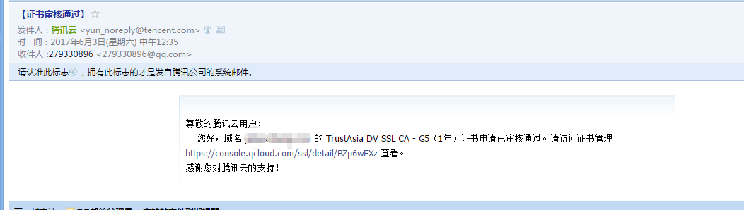 ~证书审核通过后下载下来,然后拷贝到云服务器端进行安装。