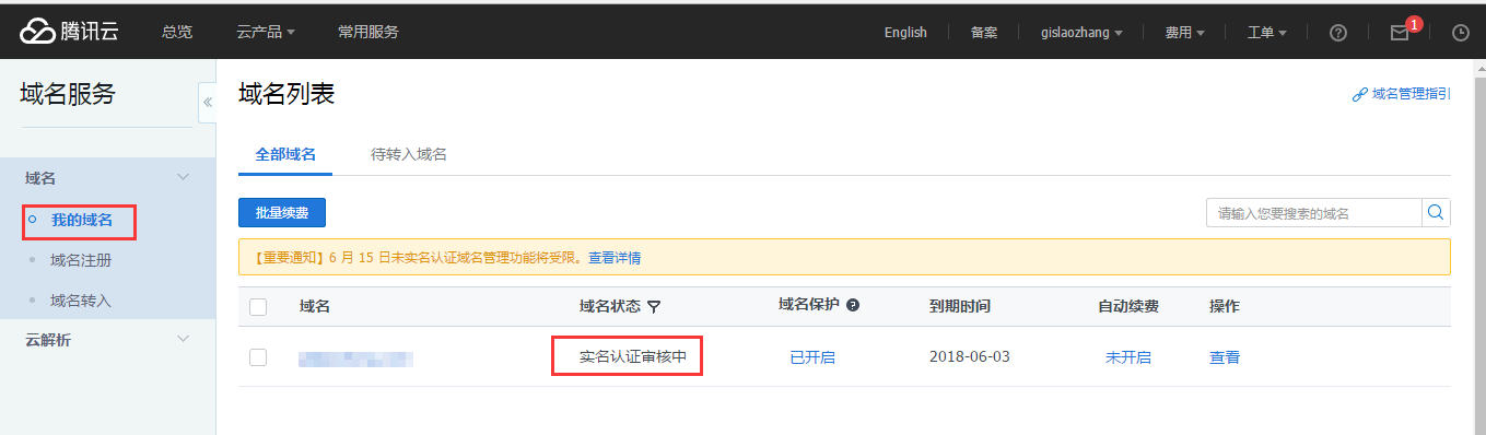 域名需要进行实名认证,提交身份证正面复印照片,提交成功后进行审核,3-5个工作日会受到以邮件的形式的审核结果通知。