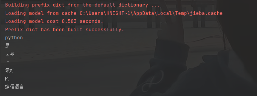 # # ['python', '是', '世界', '上', '最好', '的', '编程语言']