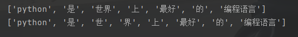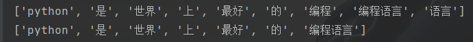 # ['python', '是', '世界', '上', '最好', '的', '编程', '语言', '编程语言']
