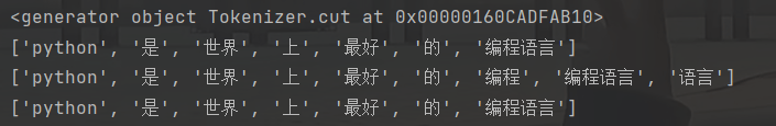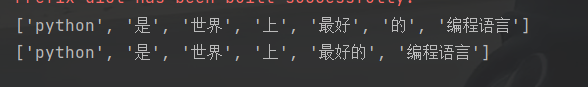 # # ['python', '是', '世界', '上', '最好', '的', '编程', '语言', '编程语言']