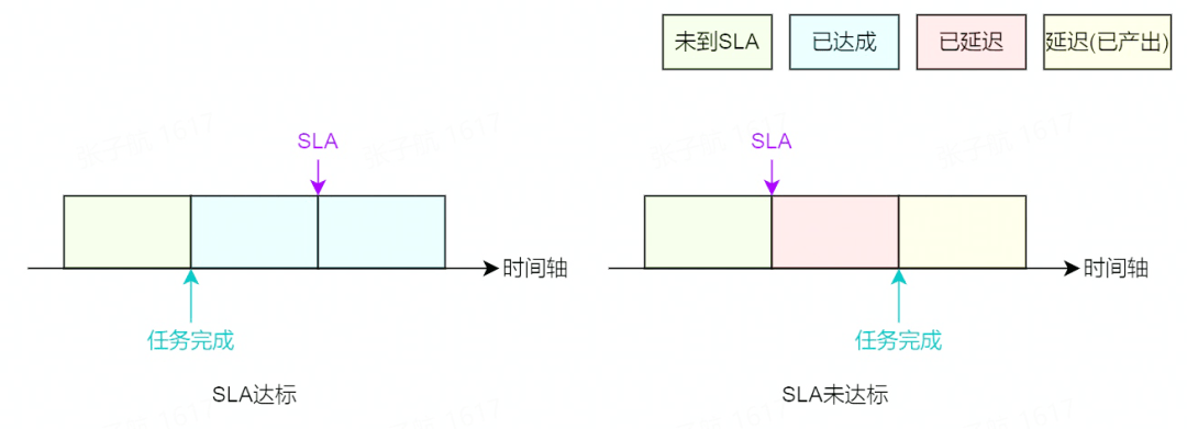 - 未到 SLA:即当前时间,任务未产出,且还未到 SLA 时间(继续监控);
