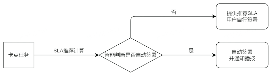 达成的流程,先通过 “系统卡点计算” 减少待签署任务的数量,再通过 “SLA 推荐计算” 自动签署部分任务,最后为剩下的待签署任务智能提供合适的