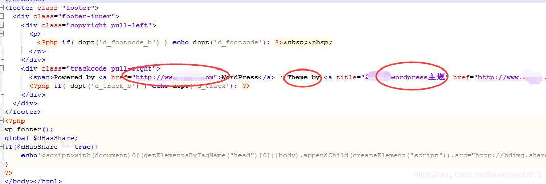 footer.php,把别人的链接修改掉,如果懂更多的代码,可以把其他网站的好的页脚代码加过来,以后有机会我会放点好代码过来。