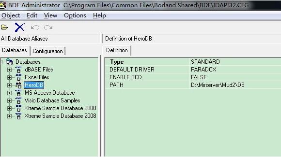 5、BDE数据库此时等待传奇服务器端的下载完成,一切完毕后我们在设置数据路径一般为MirServer/Mud2/DB,也就是DBC中那个HeroDB的Path中的值。