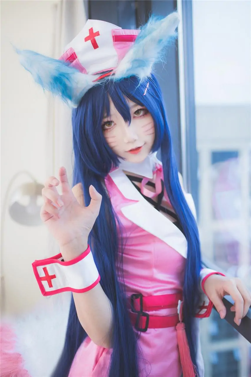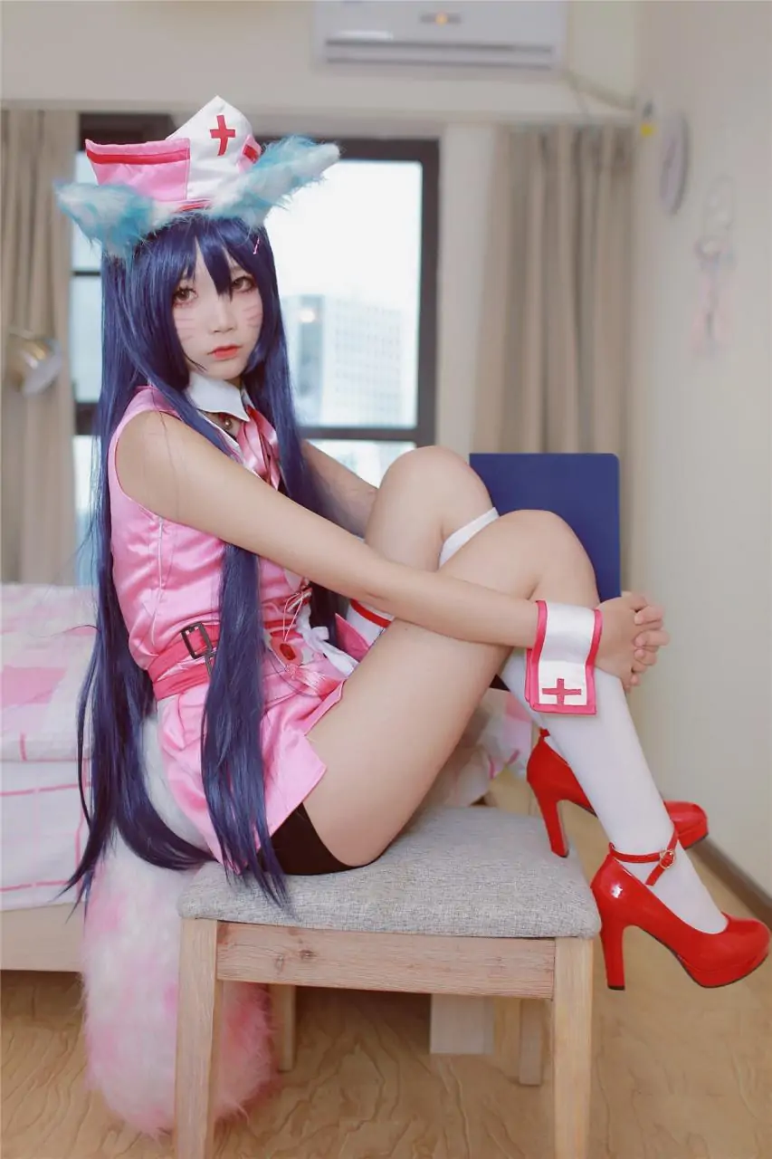 嘿嘿!本文配图用的是五更百鬼cos的阿狸护士装图片!