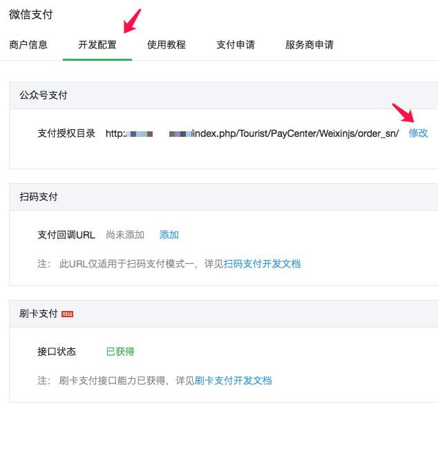 1、假如是jsapi接口,在公众号与商户号绑定后,可能需要重置一下appSecret方可正常使用公众号支付(微信浏览器内),并确保公众号设置-功能设置的业务域名、js安全域名网页授权域名都填写正确。