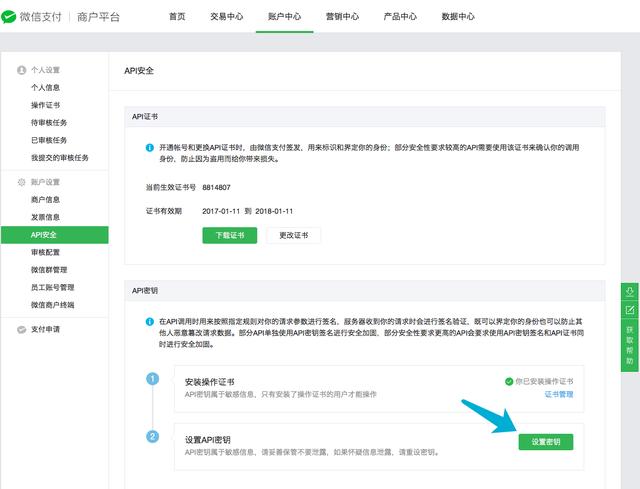 4、商户支付密钥KEY——商户平台自己设置的KEY