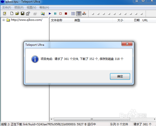 这是我们点击软件上面的三角形图标。就开始了整个网站的复制。