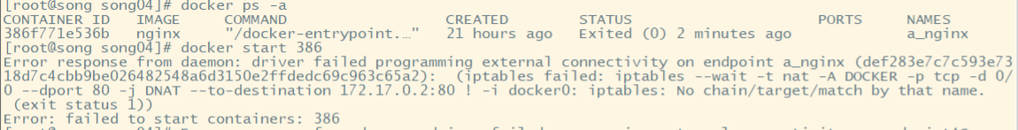 在启动Docker的容器时,会出现报错:Error response from daemon: driver failed programming external connectivity on endpoint XXX(端口映射或启动容器时报错)